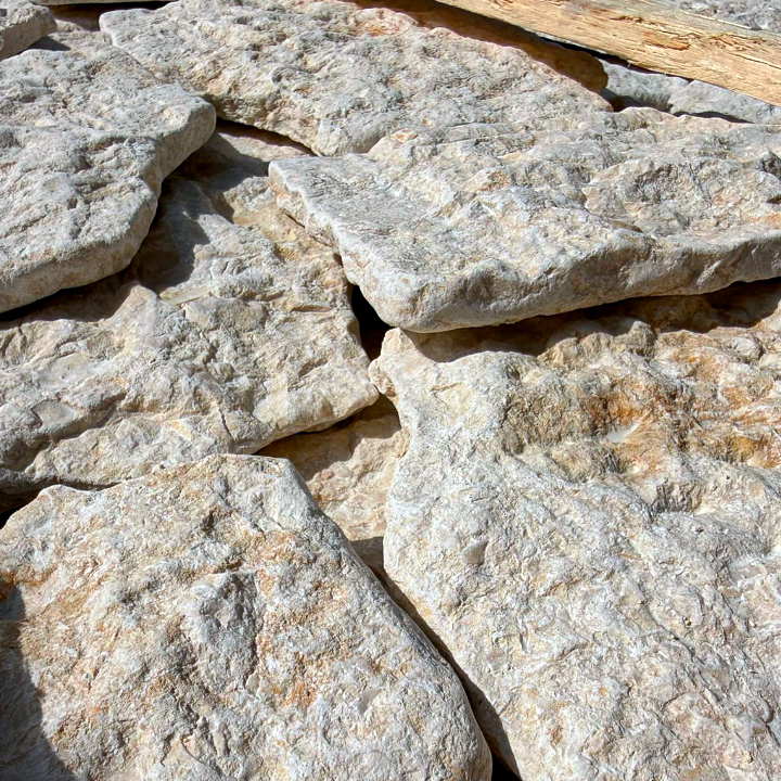Calcário egípcio Crema Suez em corte orgânico, com bordas naturais e textura rústica. Exclusivo Turimex.